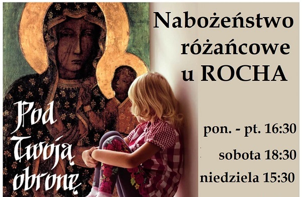 W kościele różaniec od poniedziałku do piątku o godzinie 16:30, w sobotę o godzinie 18:30, w niedzielę o godzinie 15:30